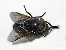 Males of these horse flies feed on plant juices, while female are bloodsuckers,[7] feeding mainly on mammalian blood, as they require a blood meal before they are able to reproduce. They may be very annoying for cattle, but usually they do not bite people.[7]