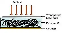 For polymers used in this device, hole mobilities are greater than electron mobilities, so the polymer phase is used to transport holes. The nanoparticles transport electrons to the electrode.[14]