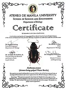 - Rappler.com (2013-09-07). "New water beetle species found in Ateneo campus". Rappler. Retrieved 2019-04-17.