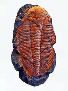 Hydrocephalus ("water head") is an extinct genus of redlichiid trilobite that was very common during the Middle Cambrian of Eurasia and North America, which lasted from 508 to 497 million years ago. This trilobite is up to 20 cm long and more widely built than others of the time. In comparison to other members of its family, its glabella appears swollen.