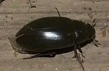 Hydrophilus triangularis, known generally as the giant black water beetle or giant water scavenger, is a species of water scavenger beetle in the family Hydrophilidae.[1][2][3] It is the most common and widespread species of Hydrophilus in North America, being found across the contiguous United States, southern Canada, and Mexico.[4][5]