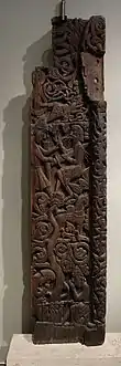 The carvings show several scenes from the legend of Sigurð Fáfnir's bane. A section of one of these carvings in which Sigurð kills Regin was the basis for a Norwegian postal stamp.[1]