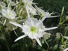 Hymenocallis coronaria, commonly known as the Cahaba lily, shoal lily, or shoals spider-lily, is an aquatic, perennial flowering plant species of the genus Hymenocallis. It is endemic to the Southeastern United States, being found only in Alabama, Georgia, South Carolina and parts of North Carolina.[3][4] Within Alabama, it is known as the Cahaba lily; elsewhere it is known as the Shoal lily or Shoals spider-lily.[5]