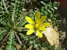 Hyoseris frutescens is a species of flowering plant called Żigland t'Għawdex in Maltese and Maltese Hyoseris or Gozo Hyoseris in English. This species is endemic to the Maltese islands,[2] where it is frequent and widespread in Gozo but rare in Malta. It was first discovered on Gozo, hence its second English name, then later found on the larger island Malta, in three separate localities. Its distribution range covers the entire western half of the perimeter on the island of Gozo, while on the island of Malta it is found on pocket isolated populations along the western cliffs of the island. It occurs in habitats such as cliffs, coastal garigue, rubble walls and boulder screes, and mainly in shady areas. The Maltese Hyoseris is one of the most archaic species in its genus to date. It is easy to cultivate by seed and it flowers all year round, but mostly in Spring and early Summer. Seeds are small achenes each with a pappus and are distributed by wind. It is a perennial species.