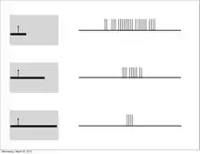 Two doctoral students in Kuffler’s lab at Johns Hopkins University, David Hubel and Torsten Wiesel, were tasked with extending his work from retinal ganglion cells to the visual cortex. Hubel and Wiesel began recording cells in the cortex while presenting spots of light as stimuli. To start, the two had failed to produce any promising recordings, as the cells would not respond to the given stimuli. However, while inserting the glass slide into the projector, a strong signal was immediately elicited. Serendipitously, Hubel and Wiesel had discovered that the cell was not responding to spots but to edges, namely the slide’s shadow as it was placed into the projector.[2][3]