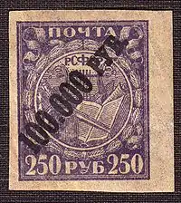 In the words of one economic historian, "The only industry which thrived was that concerned with the production of paper money."[10] The amount of currency in circulation from the beginning to the end of 1920, rose from about 225 billion rubles to 1.17 trillion.[10] This represented a 25-fold increase over the amount of paper money in circulation in 1917.[15]