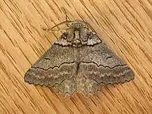 The wingspan is about 50 mm. Adults are grey-brown with wavy lines. Specimens from Tasmania are generally paler than mainland specimens.[3]