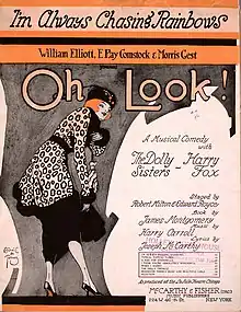 "I'm Always Chasing Rainbows" is a popular Vaudeville song. The music is credited to Harry Carroll, but the melody is adapted from Fantaisie-Impromptu by Frédéric Chopin. The lyrics were written by Joseph McCarthy, and the song was published in 1917. It was introduced in the Broadway show Oh, Look! which opened in March 1918.[1] The song was sung in the show by the Dolly Sisters.[1] Judy Garland sang it in the 1941 film Ziegfeld Girl. It was subsequently sung by Jack Oakie in the 1944 film The Merry Monahans and was again featured in the 1945 film The Dolly Sisters (1945 in film), where it was sung by John Payne.[1] It was also included for part of the run (and in the cast album) of the 1973 revival of Irene.