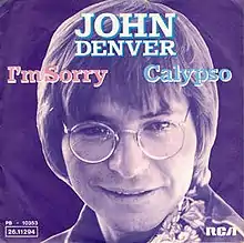 The song, which is an apology for forsaken love,[2] "I'm Sorry" reached number one on the Billboard Hot 100 chart on September 27, 1975, as well as reaching number one on the Easy Listening chart.[3] Six weeks after topping the pop chart, the song was Denver's third and final number one on the Billboard Hot Country Singles chart.[4]