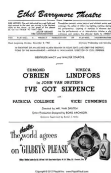 I've Got Sixpence is a 1952 play by the British writer John Van Druten. The plot follows two girls who are roommates and their contrasting relationships with men.