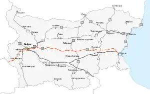 | Major cities | Kyustendil, Pernik, Sofia, Pirdop, Sopot, Karlovo, Kazanlak, Sliven, Karnobat, Aytos |