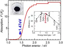 Unlike most I-III-VI2 oxides, which are transparent, electrically insulating solids with a bandgap above 2 eV, β-CuGaO2 has a direct bandgap of 1.47 eV, which is favorable for solar cell applications. In contrast, β-AgGaO2 and β-AgAlO2 have an indirect bandgap. Undoped β-CuGaO2 is a p-type semiconductor.[2]