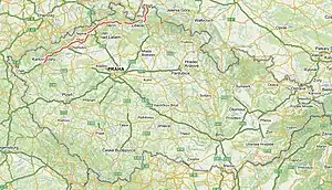 The I/13 highway (Czech: Silnice I/13) is a highway located in northwestern Czech Republic. The route leads through the Karlovy Vary, Ústí nad Labem and Liberec Regions. The road starts in Karlovy Vary at the intersection with road I/6 and ends at the Habartice/Zawidów border crossing with Poland. It has a length of 218.459 km (135.744 mi).[1]