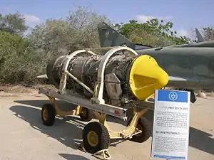 The Lavi was powered by a single Pratt & Whitney PW1120 turbofan engine, capable of generating 20,260 lb of thrust and enabling the aircraft to attain a maximum speed of Mach 1.85.[9] The engine, which was derived from the Pratt & Whitney F100 that powered the F-16, was the only aspect of the aircraft that Eine acknowledged to have created a dependency upon the US. While carrying eight 750lb bombs the Lavi possessed a combat radius of 250 nmi; an alternative armament of 2,000 lb bombs enabled a 650 nmi combat radius.[9] Possessing a 1.1:1 thrust-to-weight ratio while equipped with a combat payload, the airframe of the Lavi was designed to be capable of routinely withstanding up to 9g.[9]