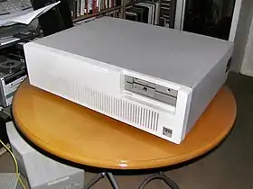 The model 5363 was positioned as a replacement for the 5364, and was announced in October 1987.[10] It used a deskside tower style enclosure like that of the 5362, but was only 2/3 the size. It featured updated hardware using newer, smaller hard drive platters, a 514" diskette drive, and a revised distribution of the SSP.