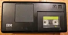 In 1979 IBM announced a mini-cassettte dictation recorder called the IBM Executive Recorder, manufactured by a third party in Japan. It weighs 10 oz (280 g) and can record 30 minutes. It can also be used as a transcriber with an optional foot-pedal, headset and power adapter.[23] The sound quality is poor compared to competing micro-cassette machines and it is incompatible with either IBM's magnetic belt or 6:5 models. In response to complaints, IBM Austin developed a dual-media transcriber (Model 292) that accepts both the mini-cassette and the 6:5 cartridge.[24]