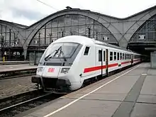 In addition to the ICE 4, Deutsche Bahn has awarded Bombardier Transportation a contract to supply double-decker coaches for Intercity services. These kind of coaches are used in German Regional-Express trains, for Intercity services the coaches will get a more comfortable interior than in regional train double-decker coaches. In both classes only open coaches are provided, there will be no dining car.[10] The double-decker coaches have been in service since 2015.[11] Unlike most previous IC stock the new trains, marketed as "InterCity 2" by DB have a top speed of 160 km/h and are mainly intended for routes where higher speeds aren't possible or would offer little or no benefit with the ICE 4 to take over routes with maximum speeds between 160 km/h and 250 km/h. The IC2 is also intended to expand the Intercity network to cities that had lost their long-distance service upon withdrawal of the Interregio.