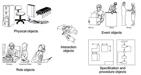 - Interaction Objects: Interaction objects are the result of interactions or transactions between two or more objects.