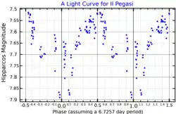 II Pegasi is a binary star system in the constellation of Pegasus with an apparent magnitude of 7.4 and a distance of 130 light-years. It is a very active RS Canum Venaticorum variable (RS CVn), a close binary system with active starspots.