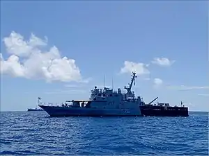 INS Kabra is a naval vessel named after an island of the Andaman and Nicobar archipelago. It belongs to the Car Nicobar class of high-speed offshore patrol vessels are built by Garden Reach Shipbuilders and Engineers (GRSE) for the Indian Navy. Kabra was eighth in a series of 10 Fast Attack Crafts. The vessels are designed as a cost-effective platform for patrol, anti-piracy and rescue operations in India's Exclusive Economic Zone.[2]