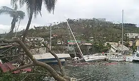 On 7 September 2004, after being hurricane-free for 49 years, the island was directly hit by Hurricane Ivan.[61] Ivan struck as a Category 3 hurricane, resulting in 39 deaths and damage or destruction to 90% of the island's homes.[14][23][24] On 14 July 2005, Hurricane Emily, a Category 1 hurricane at the time, struck the northern part of the island with 80-knot (150 km/h; 92 mph) winds, killing one person and causing an estimated US$110 million (EC$297 million) worth of damage.[14][24][62] Agriculture, and in particular the nutmeg industry, suffered serious losses, but that event caused changes in crop management and it is hoped that as new nutmeg trees mature, the industry will gradually rebuild.