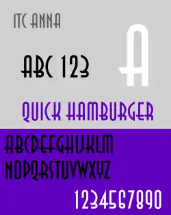 Anna is a geometric, Art Deco typeface created by Daniel Pelavin for ITC in 1991.[1]