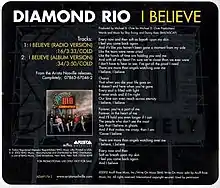 "I Believe" is a song written by Skip Ewing and Donny Kees, and recorded by American country music band Diamond Rio. It was released in November 2002 as the second single from their album Completely. The song became Diamond Rio's fifth and final No. 1 single on the Billboard Country Songs chart in 2003.