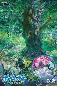 The film was officially revealed during the December 15 broadcast of TV Tokyo's Oha Suta program, revealing a teaser trailer and poster of the film.[4] This early content revealed Ash and Pikachu alongside the Legendary Pokémon Ho-Oh, showing that the film would act as a retelling of the first season, exploring some of the important plot points of the series. Ho-Oh's appearance in the film was also detailed to be important to the film's storyline.[5] A second trailer for the film was revealed at the March 1 broadcast of Oha Suta, revealing remade scenes from the first episode and its official English title.[6] It was then posted on the official YouTube page the next day.[7]