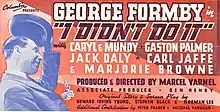 I Didn't Do It is a 1945 British comedy crime film directed by Marcel Varnel and starring George Formby, Dennis Wyndham and Carl Jaffe. Formby's songs include: "She's Got Two Of Everything"' (Cunningham/Towers), "'I'd Like A Dream Like That'" (Formby/Cliffe), and "The Daring Young Man"' (Formby/Cliffe).[1] Because of a realistic murder scene, the film was granted a British 'A' certificate, ensuring no one under the age of 16 would be admitted to the cinema unless accompanied by an adult.[1]