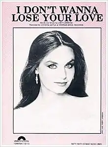 "I Don't Wanna Lose Your Love" is a song written by Joey Carbone and recorded by the American country music artist Crystal Gayle. It was released in February 1984 as the second single from the album Cage the Songbird. The song reached number 2 on the Billboard Hot Country Singles & Tracks chart.[1]