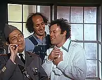 I Wonder Who's Killing Her Now? (original USA theatrical name Kill My Wife, Please) is a 1975 black comedy movie directed by Steven Hilliard Stern, and starring Bob Dishy and Joanna Barnes. Originally Peter Sellers was to be cast as the lead, but insurance refused to cover him after a recent heart attack, and Dishy was cast as his replacement at the last moment. It was directed by Steven Hilliard Stern, from a screenplay by Mickey Rose.