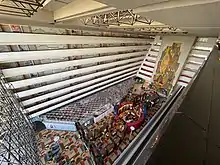 The Contemporary Tower houses most of the resort's key facilities, including resort registration and the guest service concierge. The main hall, named the Grand Canyon Concourse, is located in the main tower and houses restaurants and shops. 383 guest rooms line the outer walls of the Contemporary Tower. The Walt Disney World Monorail System runs through the inside of this building and a monorail station is located here for resort guests. Adorning the concourse walls is a multi-story mosaic designed by Mary Blair. One three-story wing flanks the south side of the tower and houses an additional 250 rooms. A convention center was added to the resort and opened on November 11, 1991, with more than 90,000 square feet (8,400 m2) of convention space. In October 2007, the resort received designation as part of the Florida Green Lodging Program.[18]