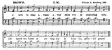 "I love to steal awhile away" (originally, "An Apology for my Twilight Rambles, Addressed to a Lady") is a Christian hymn written by Phoebe Hinsdale Brown in 1818 in New Haven, Connecticut, U.S. It was Brown's habit to retire some distance from her house every day at a certain hour for meditation and prayer. The well-beaten path to the woods was discovered, and she was ridiculed by a thoughtless neighbor.[1] "I love to steal awhile away" was written that night in tears, and later sung wherever the English language is spoken.[2] The original version of the poem referenced Brown's domestic cares, but these were removed by the Rev. Asahel Nettleton in the published hymn.[3]