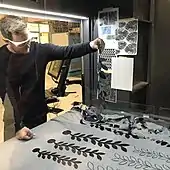 Berry was so committed to this cause that he exhibited at the Children's Museum of Art New York where he showed the Secret Garden in 2017.[52] In 2018 he travelled the United States and gave lectures in many schools[121] and when he found that many students were inspired to do his work, but didn't have the correct equipment so Berry arranged for many companies to step in and donate tools like scissors, denim and rotary cutters.[122] Many Children, parents and teachers send him examples of their work inspired from him.[71]