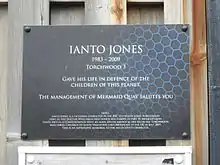 Soon after the death of Ianto Jones during Torchwood's third series, a campaign to bring him back was started through networking sites such as LiveJournal, Twitter and Facebook.[72] The resulting website, www.saveiantojones.com, has organised a protest which encourages fans to send coffee, along with postcards and letters of complaint, to the BBC, a reference to Ianto's status as the "coffee boy". Via the Save Ianto Jones website, fans are also campaigning to raise money for the BBC charity Children in Need in honour of the character. The fundraising site states that "Though we, his devoted fans, still hope that he'll come back ... we mourn him. In the series, he died saving the children of Earth; so it seems fitting to honour his memory by helping the Children in Need."[73][74] Torchwood Magazine reported that the site had raised nearly £4,000, with individual donations ranging from £2 to £50. John Barrowman described the charity campaign as "a fun way to mourn Ianto" and stated that it was "the kind of thing that's really appreciated".[73] Gareth David-Lloyd was flattered by the strong fan reaction, saying it is "satisfying in drama when you create such an emotional response, because that's what you set out to do in the first place". He praised the fan donations, claiming "So far, they've raised about £3,000 for Children in Need, and £1,000 for Lluest Horse and Pony Trust in West Wales, which I'm a patron of, so that's got to be a good thing".[51] Coventry Telegraph records that by 21 July 2009, £4,172 had been donated in Ianto's name.[74]
