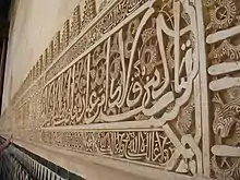 ![]() An inscription in the Court of the Myrtles of the Alhambra, where poetry by Ibn al-Khatib is inscribed.[1] | |