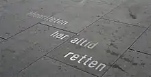 The initiative was taken by Sune Nordgren, inspired by a similar project involving August Strindberg quotes in Stockholm, Sweden. In 2001, Gavin Jantjes was appointed curator of the work. Sixty quotes in steel lettering were to be set into the sidewalks. The work was to be completed by 2006, the 100th anniversary of Henrik Ibsen's death.[1] As a result of delays, by 2006 only three quotes had been laid, at a cost of 1.7 million kr. The Swedish artist duo FA+ (Ingrid Falk and Gustavo Aguerre) had been selected to handle the quotes, but they resigned from the project in May 2006. NOK 400,000 came from the Arts Council Norway and the foundation that oversaw the 100th anniversary, but some of the funds were used for other causes. The group behind the project, the Ibsen Foundation, explained that in their view the money had not been specifically earmarked.[2]