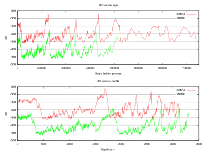 - Landais, A.; Dreyfus, G.; Capron, E.; Pol, K.; Loutre, M.F.; Raynaud, D.; Lipenkov, V.Y.; Arnaud, L.; Masson-Delmotte, V.; Paillard, D.; Jouzel, J.; Leuenberger, M. (2012). "Towards orbital dating of the EPICA Dome C ice core using δO2/N2" (PDF). Climate of the Past. 8 (1): 191–203. Bibcode:2012CliPa...8..191L. doi:10.5194/cp-8-191-2012.