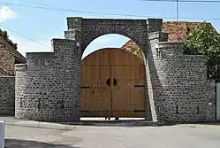The city block consists of ten brick houses and two fortress walls.[1][2]