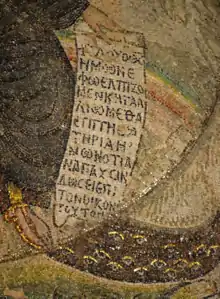 The Icon of Christ of Latomos (or Latomou), also known as the Miracle of Latomos,[1] is a Byzantine-style mosaic of Jesus in the monastery of Latomos (now the Church of Hosios David the Dendrite)[2] in Thessaloniki, Greece, that is an acheiropoieton (a religious image that is believed to have been made miraculously).[1] The origins of this mosaic icon can be traced back to the late third century AD when Maximian and Diocletian reigned jointly over the Roman Empire. The Icon of Christ of Latomos is one of the lesser-known acheiropoieta (Greek: αχειροποίητα εικόνα).[3]