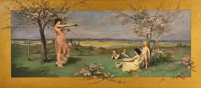 Burgess exhibited her art in the Illinois State Building at the 1893 World's Columbian Exposition in Chicago, Illinois, including the mural for the women's reception room of the Illinois State Building.[2] She subsequently decorated parts of Lunt Hall Library (now the Department of Mathematics building) at Northwestern University, specifically the entrance hall, the book room, and the reading room.[3]