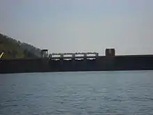 Idamalayar Dam is a multipurpose concrete gravity dam located at Ennakkal between Ayyampuzha and Bhoothathankettu in Ernakulam district of Kerala on the Idamalayar, a tributary of the Periyar River in Kerala, South India. The dam however extends east as far as Malakkappara. Completed in 1985, with a length of 373 metres (1,224 ft) and a height of 102.8 metres (337 ft), the dam created a multipurpose reservoir covering 28.3 km2 (10.9 sq mi) in the scenic hills of the Anamalais.[1][2]