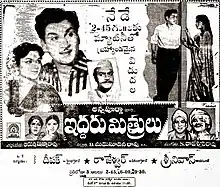 Iddaru Mitrulu (transl. Two friends) is a 1961 Indian Telugu-language drama film directed by Adurthi Subba Rao and produced by D. Madhusudhana Rao under Annapurna Pictures. The film stars Akkineni Nageswara Rao, Rajasulochana and E. V. Saroja, with music composed by S. Rajeswara Rao.[1] It is a remake of the 1957 Bengali film Tasher Ghar. The film was also made in Tamil as Ennai Pol Oruvan.[2] Urvashi Sharada made her Telugu cinema debut in her first significant adult role through this film.