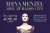 Idina Menzel: Live at Radio City was a concert by American singer-songwriter and actress Idina Menzel at Radio City Music Hall in New York City, New York on June 16, 2014. In the wake of the success of Disney's popular animated film Frozen (2013), in which Menzel starred as Elsa, Menzel announced in April 2014 that she will be headlining a one-night-only concert at Radio City Music Hall on her break from her eight shows a week.