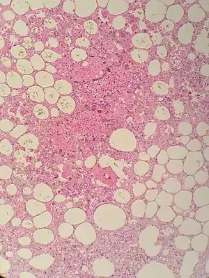 | Sclerosing mesenteritis - note the hemosiderin, chronic inflammation | |