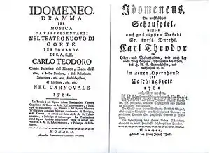 Idomeneo, a 1781 opera seria by Mozart, is based on the story of Idomeneus's return to Crete. In this version, Poseidon (Neptune in the opera) spares Idomeneo's son Idamante, on condition that Idomeneo relinquish his throne to the new generation.