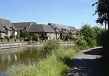 The weir is downstream of the lock, where the weir stream is joined by the mill stream.