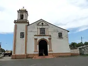 Iglesia de San Felipe is located in Portobelo, a block to the east of Real Aduana.[2][4] It is situated near the ruined 16th-century Capilla de San Juan de Dios. The Iglesia de San Felipe, a large white-painted building,[1] was the last structure built by Spain before leaving Panama.[2][4] After the Cristo Negro statue was constructed in 1814, it was installed in the church. The statue is adorned in various gowns; these are preserved at the Museo del Cristo Negro (Black Christ Museum), which is situated at the Iglesia de San Juan de Dios.[3]