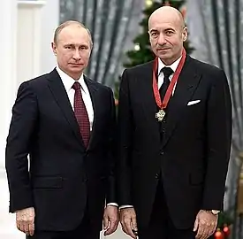 Igor Yakovlevich Krutoy (Russian: Игорь Яковлевич Крутой) or Ihor Yakovych Krutyi (Ukrainian: Ігор Якович Крутий, born on July 29, 1954), is a Ukrainian and Russian music composer, performer, producer and musical promoter.[1] Krutoy was awarded the Lenin Komsomol Prize in 1989.[2] He is also "Honoured Artist of the Russian Federation",[3] People's Artist of Russia[3] and People's Artist of Ukraine.[4]