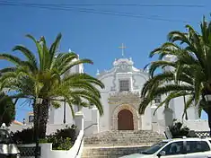 The earlier church was badly damaged in the 1755 earthquake during which the bell tower collapsed.[5] The Manueline doorway survived,[4][6] as did the tiling in the chancel end. Reconstruction took a number of years since various of alterations were introduced,[4] including the replacement of the original interior columns with cylindrical classical ones reflecting contemporary taste (a revival of the style of the second half of the sixteenth century) similar to what occurred in Lagoa and St. Peter (São Pedro) of Faro.[2]